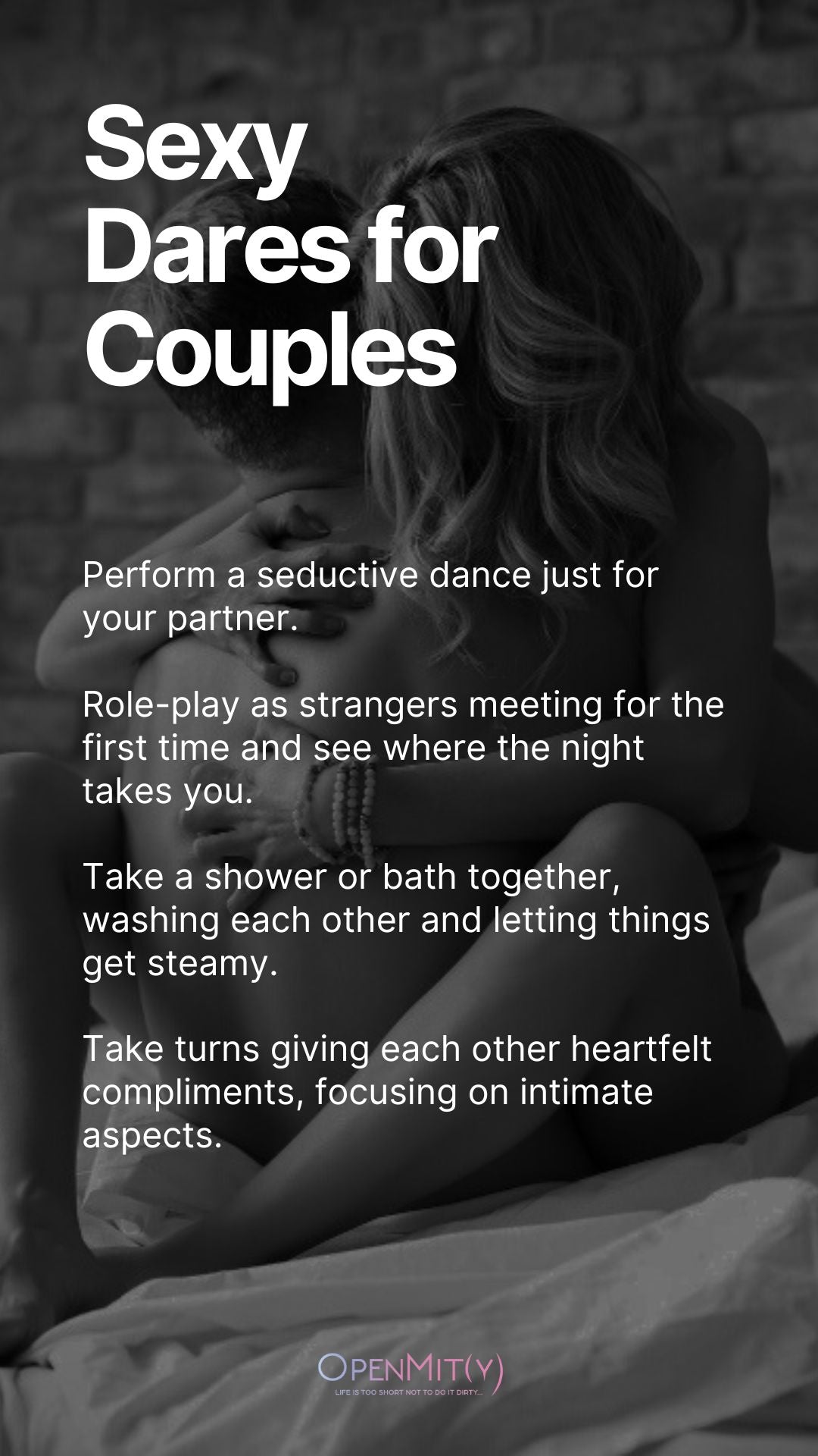 Love is about moments that quicken the pulse and deepen the bond. We present 70 daring dares for couples that span the spectrum from funny and playful to irresistibly sexy, tantalizingly dirty, and thrillingly extreme. Whether you're seeking laughter, intimacy, or a rush of adrenaline, these daring ideas promise to spice up your moments together. Get ready to explore a variety of dares that will bring you closer, spark excitement, and create unforgettable experiences in your relationship.
