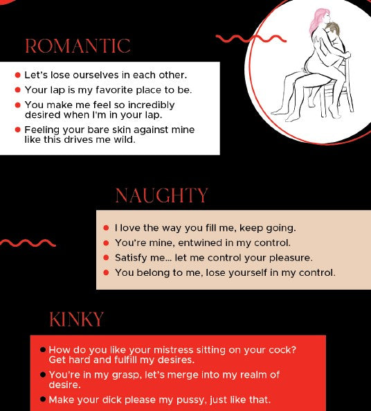 Whisper this during intimate moments to deepen emotional intensity and strengthen that feeling of closeness and devotion. - "Beg for it" - Add a little tension by encouraging your partner to ask for what they want. It builds anticipation and makes the moment even more rewarding.