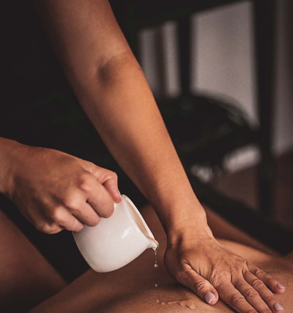You ask me to undress and lie down. I consent. Then you start massaging my back with the oils. As the aroma fills my nostrils, my body melts into your hands. You accompany the massage with kisses on the nape of my neck.