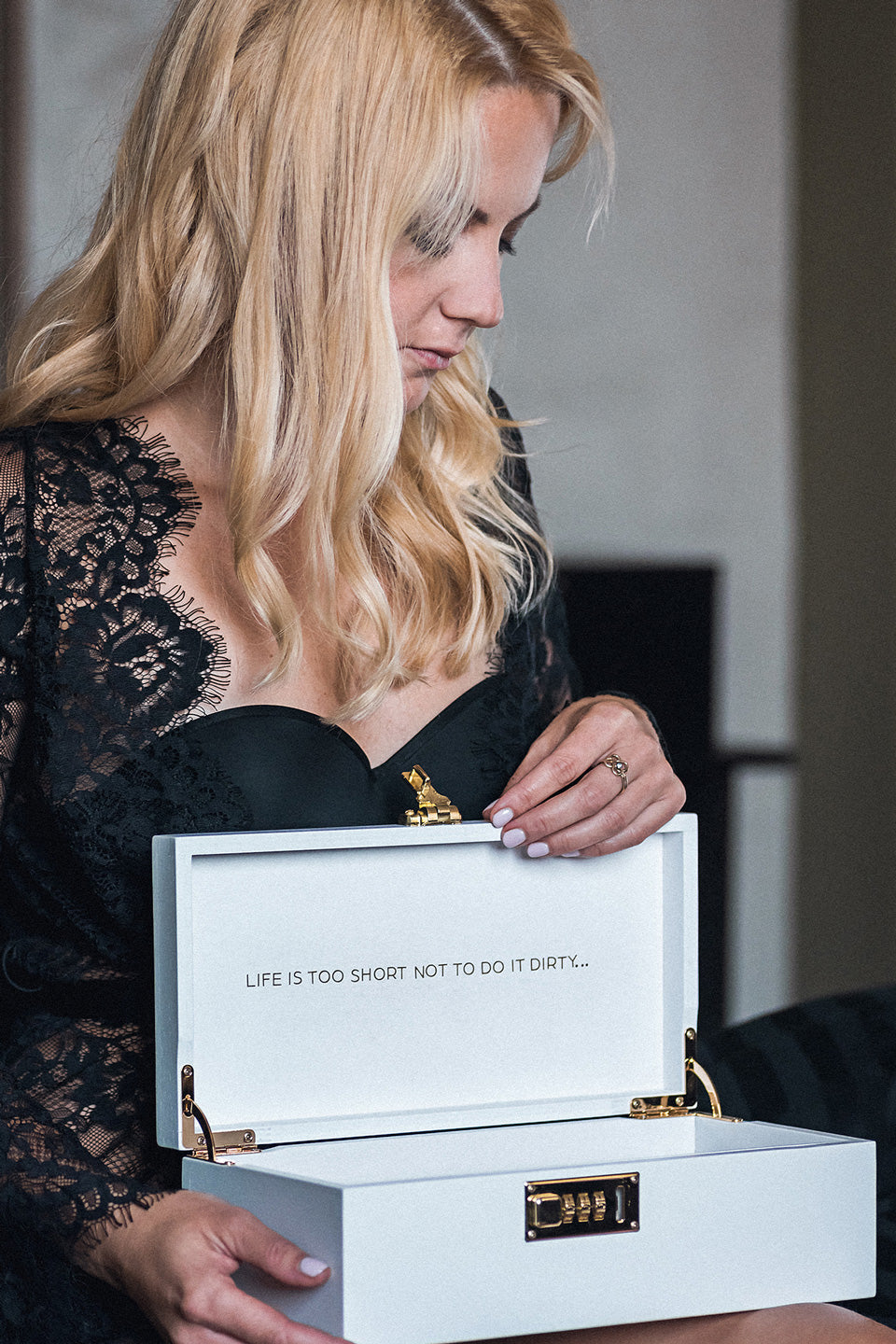 - With the motto (Life is too short not to do it dirty) inside the box.
