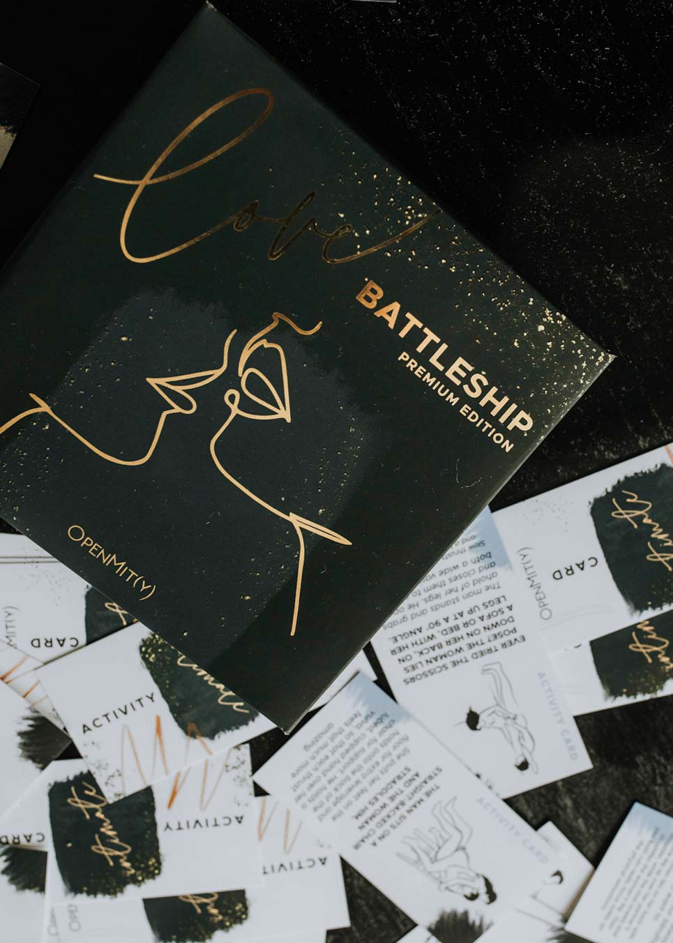The Love Battleship dating card game, created by OpenMity, is one of our bestsellers. We revamped the classic Battleship game by giving it a romantic twist – 50 different Activity and Foreplay cards for you to enjoy. We've added watercolor illustrations and clear instructions on each game card to make your experience easy to understand and smooth.